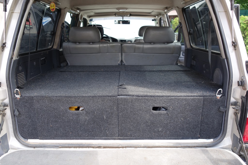 Спальная полка с выдвижными ящиками и рундуками.