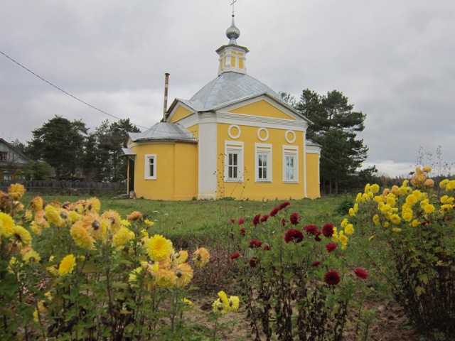 В обрамлении хризантем церковь выглядит как конфетка. И как-то там вообще хорошо, в этом месте. Такое ощущение, что приехал к себе домой.