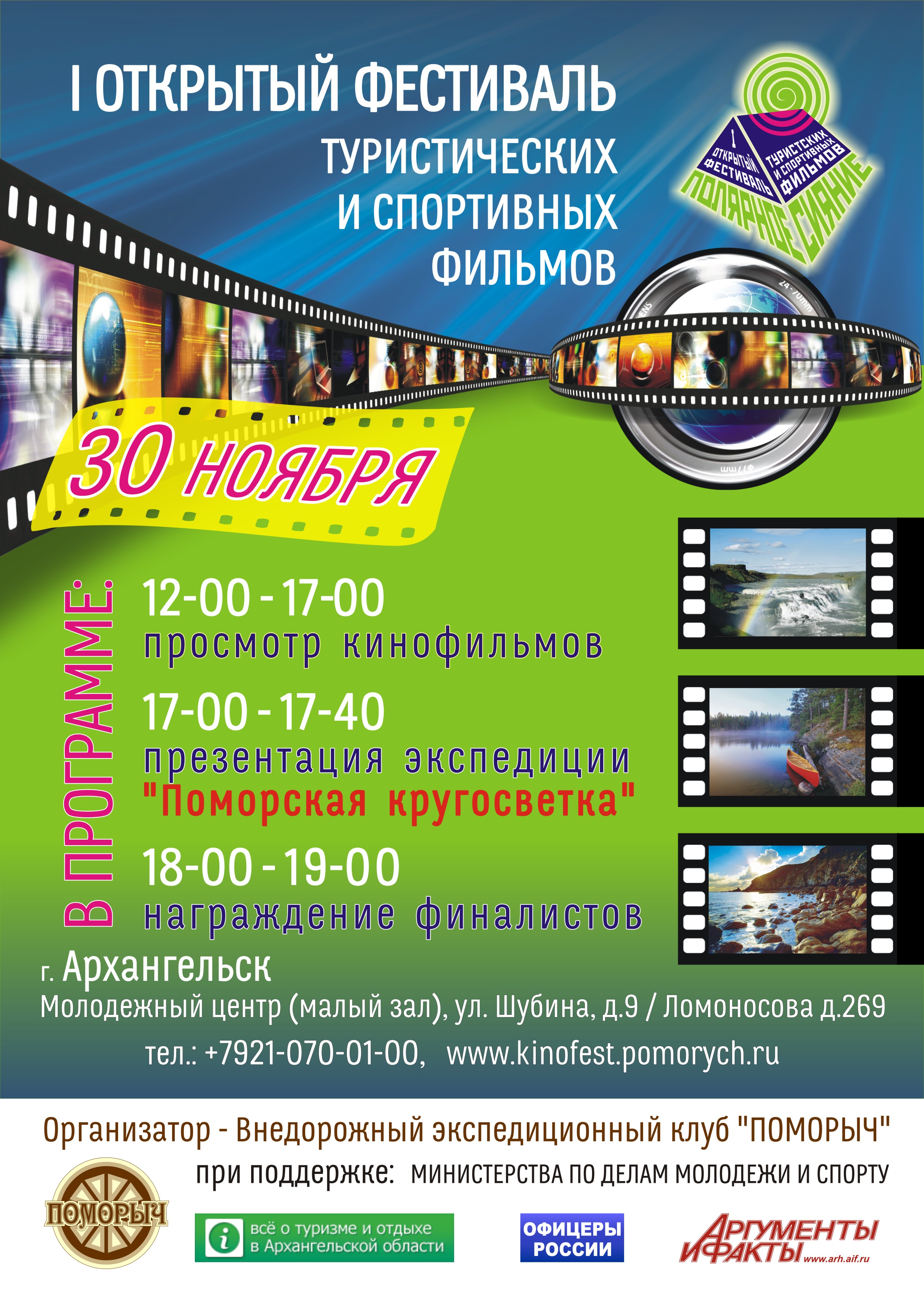 В столице Поморья пройдет I открытый областной Фестиваль туристских и спортивных фильмов — «Полярное сияние»