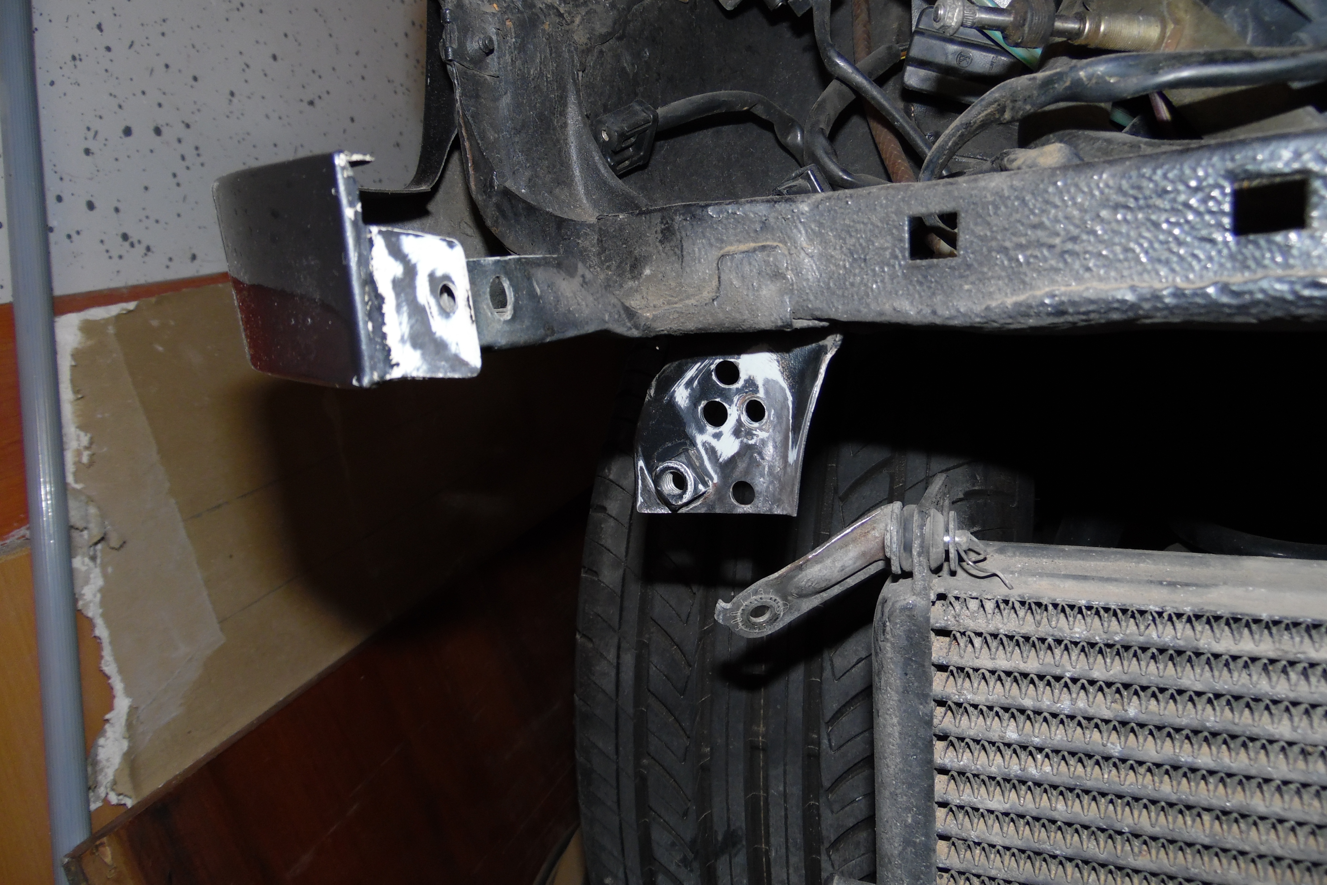 3. Перед полной сборкой всех узлов и ТО надо будет устранить один небольшой очаг коррозии на кронштейне маслянного радиатора (перед передним правых колесом).