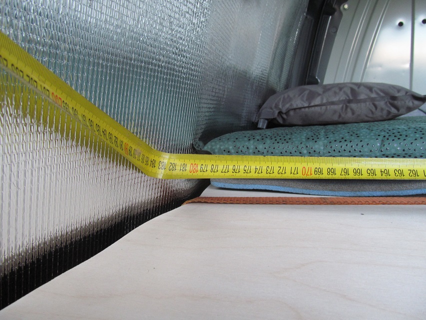 Длина спального места 1830 мм, ширина 1250 мм. Думал что будет длиннее, но кузов сужается к верху.