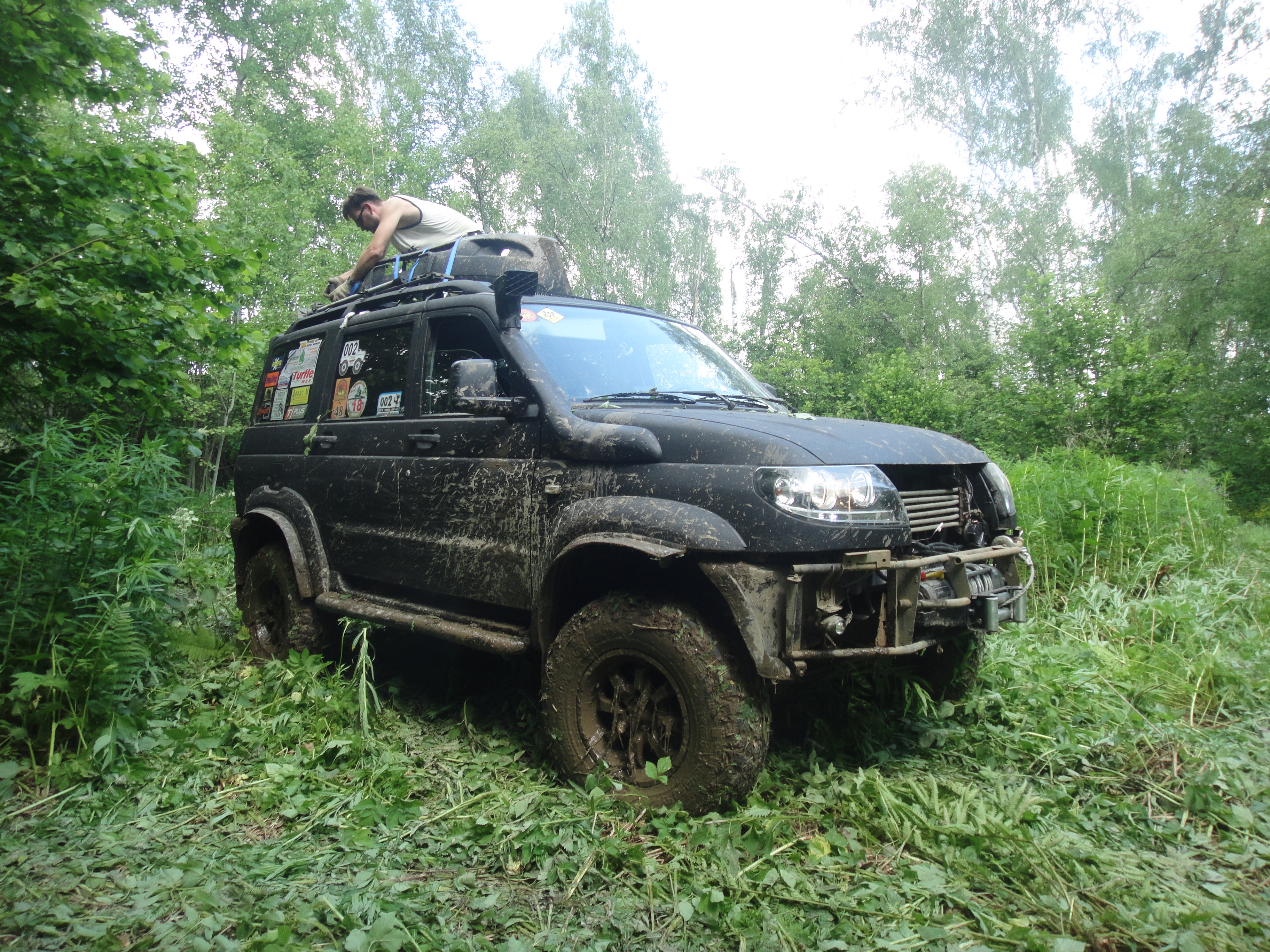 Что имею: Имею Патриот, с лебедкой, самоблоками в обоих мостах, рацией СВ и УКВ, всем необходимым инвентарем (навигация, джек, лифт-мейт, сенд-траки, тросы и пр.). Колеса 32", с резиной пока непонятно: либо зимняя шоссейка + цепи (по необходимости), либо МТ. Если получится за оставшееся время получить от шиномонтажа возмещение за испорченный комплект резины - тогда будет МТ.