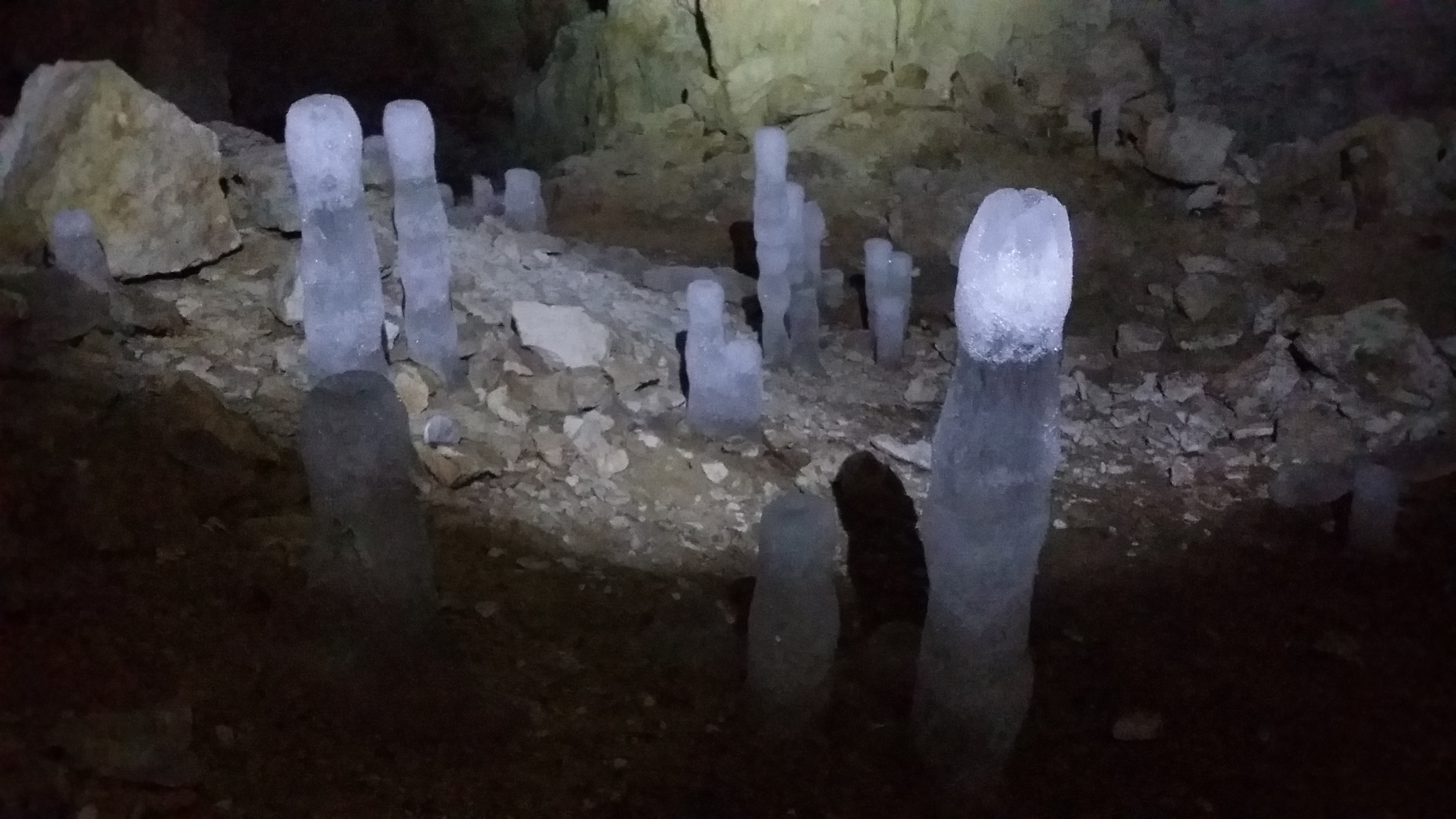 Совершенно случайно 1 февраля попал в это место. Так сложились звезды. Доехал до Старицы, поворачиваем налево и едем до конечной точки, где можно бросить #пузотера# -дер. Пентурово. Далее до деревни Толпино идет лесная-полевая дорога, по которой проедет любой стоковый внедорожник. Мы же пошли пешком. До Толпино шли мин.40 спокойным шагом.Постоянных жителей в Толпино нет. Я так понимаю что деревня живет только когда нет снега.В Толпино по указателю идти вдоль ручья по правой стороне. В одном месте сразу после деревни ручей, его надо перейти. Сапоги или аналогичная обувка не помешает. Весной ручей достаточно широк и наличие высоких сапог наверное обязательно. Ну или разуваться. Пещера Ледяная находится прямо около Волги, где этот ручей впадает в реку. Около впадения ручья в реку есть отличное место для кемпинга.Берег Волги очень красив. Входы в пещеру находятся на среднем ярусе возвышеностей. Т.е. если берег реки это нижний ярус, соответственно верхний ярус это верхушка берега. А по середине идет тропа. Так вот она и приводит ко входам. Мы нашли 4 входа. Первый очень узкий, но нам всетаки удалось туда проникнуть. Правда мы сильно испачкались в незамершей земли при спуске. Но, далее есть нормальный вход в пещеру.Соответственно наличие фонарей, сапог и веревки. Веревка нужна чтоб не потерятся в пещере. Там много всяких ответвлений, и с первого раза немного страшновато. Также есть летучие мыши, правда они спали, но…В пещере тепло.От дер.Пентурово до пещеры идти 3 км. Мы спокойно дошли за 1 час. Также дорога идет вдоль берега Волги прямо к пещерам. Но откуда она начинается пока я не выяснил. Вообщем рекомендую. Всем удачи.