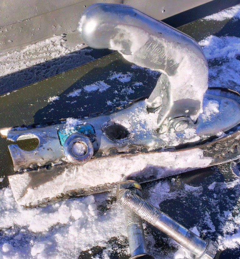 После экскурсии, Володя и Юра на Трэколах рассказали нам, что на нашем маршруте на лед лучше выходить в другом месте, а не прямо здесь, так как на выходе их губы зона постоянного торошения. Дали нам ряд опорных точек на ближайший участок маршрута (они в тех местах обычно рыбачат) и проводили нас до ближайшего ориентира - километров 40 с нами ехали! Большое, Вам, спасибо ребята за поддержку и помощь!