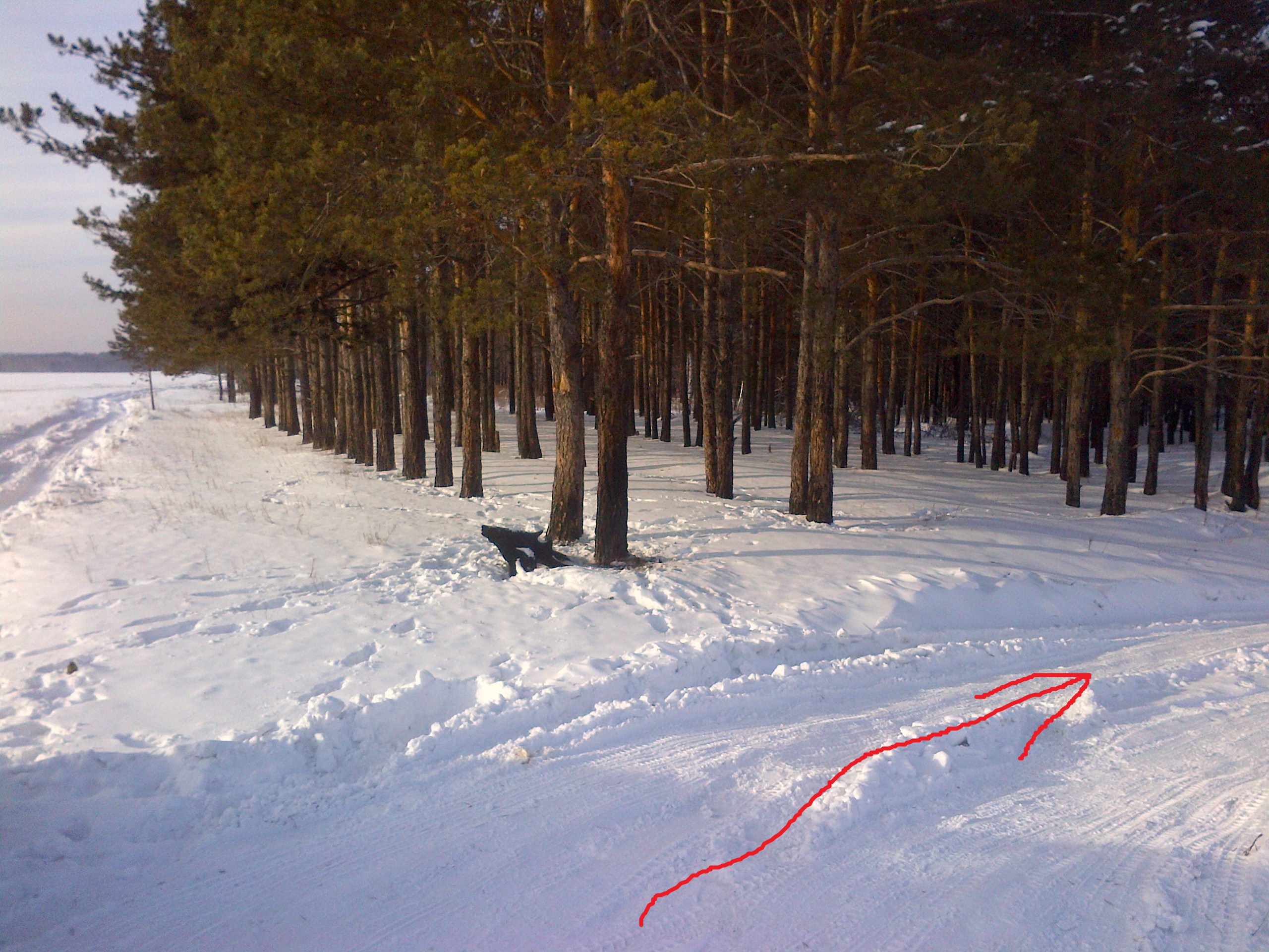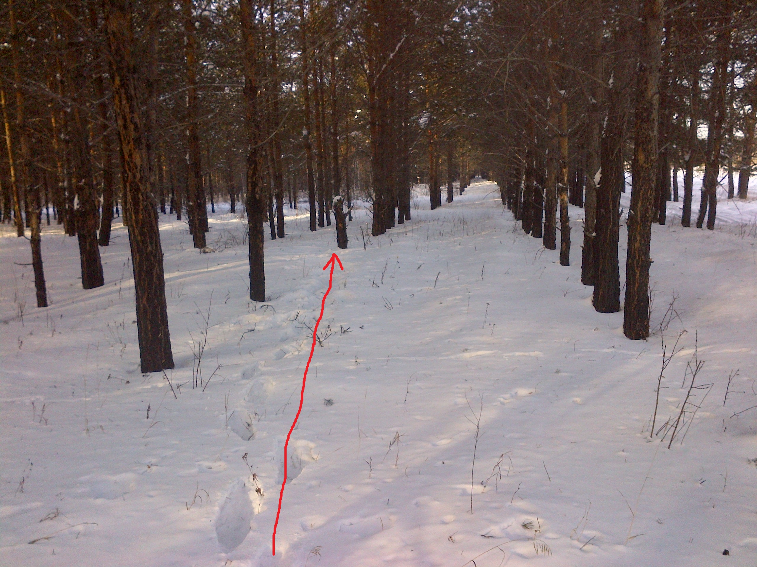 точное место: в снегу, с северо-западной стороны под деревом, обломанном на уровне 1м от земли