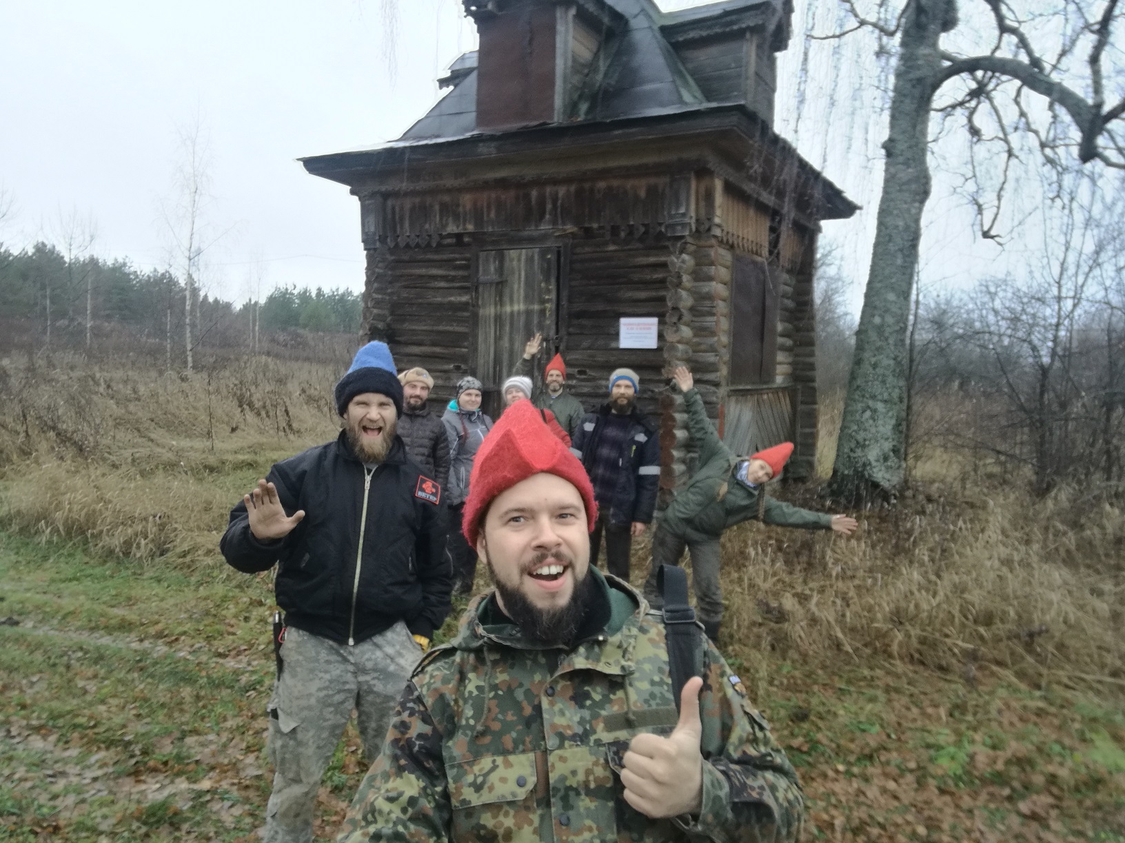 Команда "Окрута" Второй день Полной Чухломы 2018 Точка 54 Д. Деревеньки. Небольшая деревянная рубленая часовня, построенная в кон. XIX - нач. ХХ вв. в деревне холмовского прихода. Четверик, украшенный "ропетовским" декором, завершенный невысоким шатром.