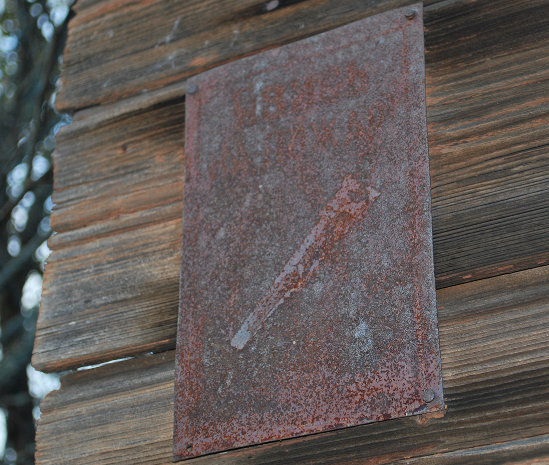 Для затравки вот такая табличка попалась на одном из домов в брошенной деревне.